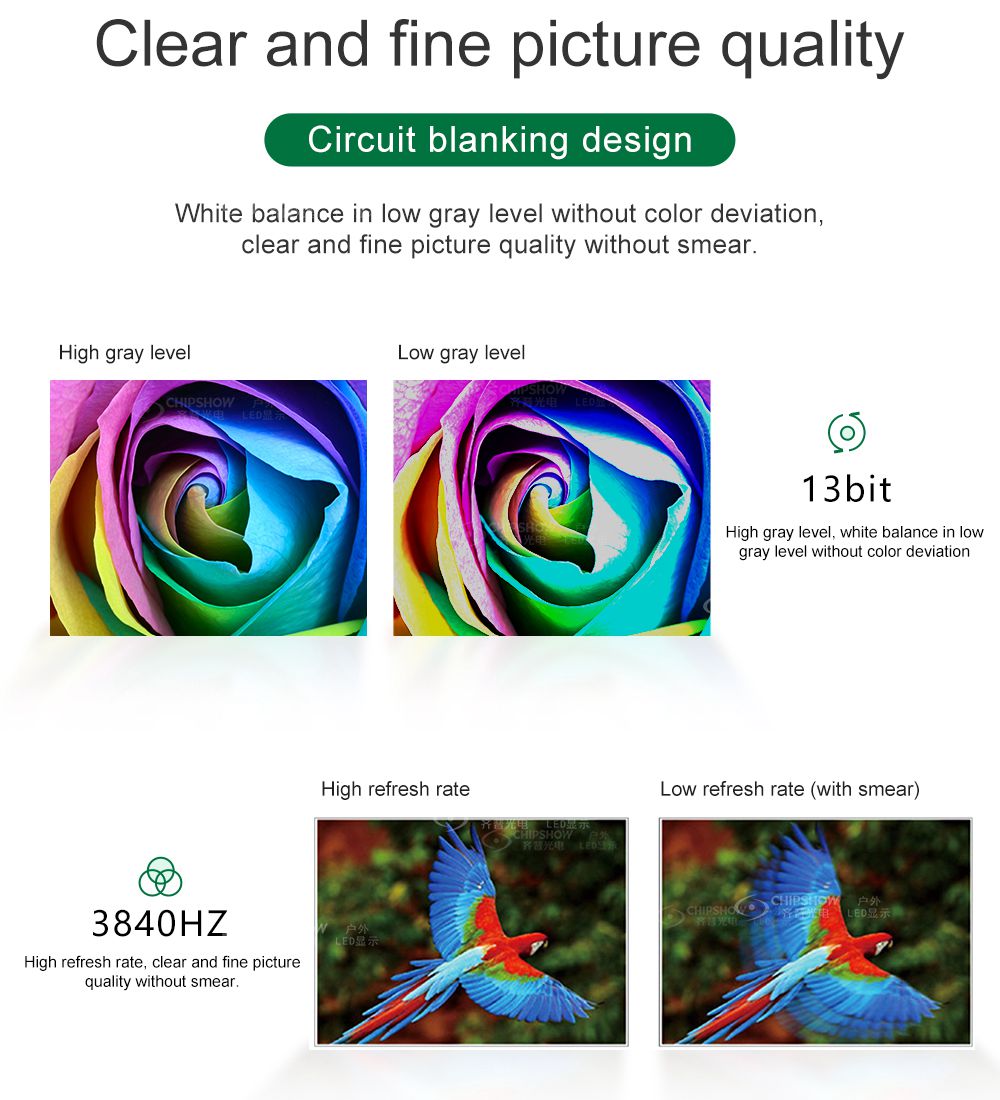 2 Высокое качество изображения: используется схема гашения переднего края для эффективного устранения призрачных линий; благодаря балансу белого ниже низкого уровня серого достигается превосходное качество изображения без отклонений цвета;