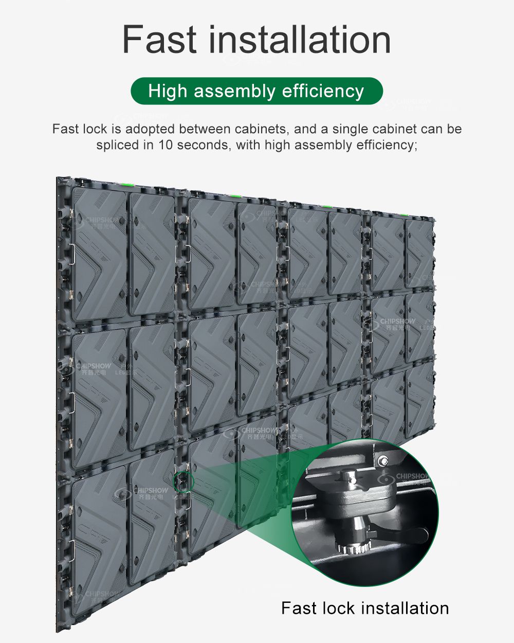 7 Быстрая установка: каждый шкаф соединен с помощью быстрых замков, а соединение двух шкафов занимает всего 10 секунд;