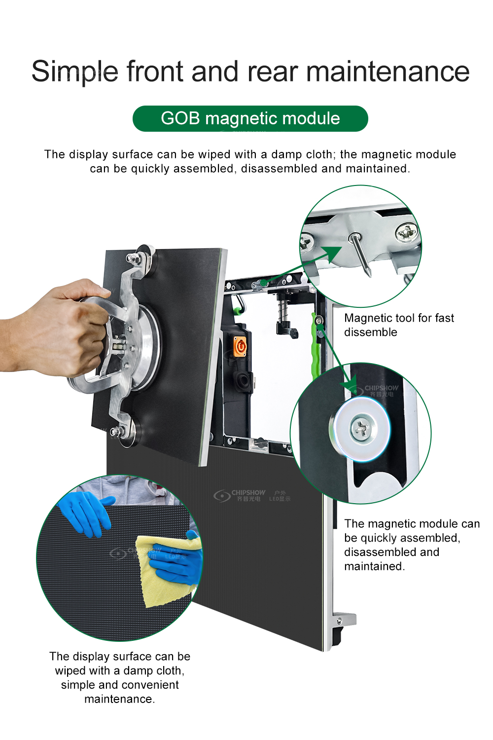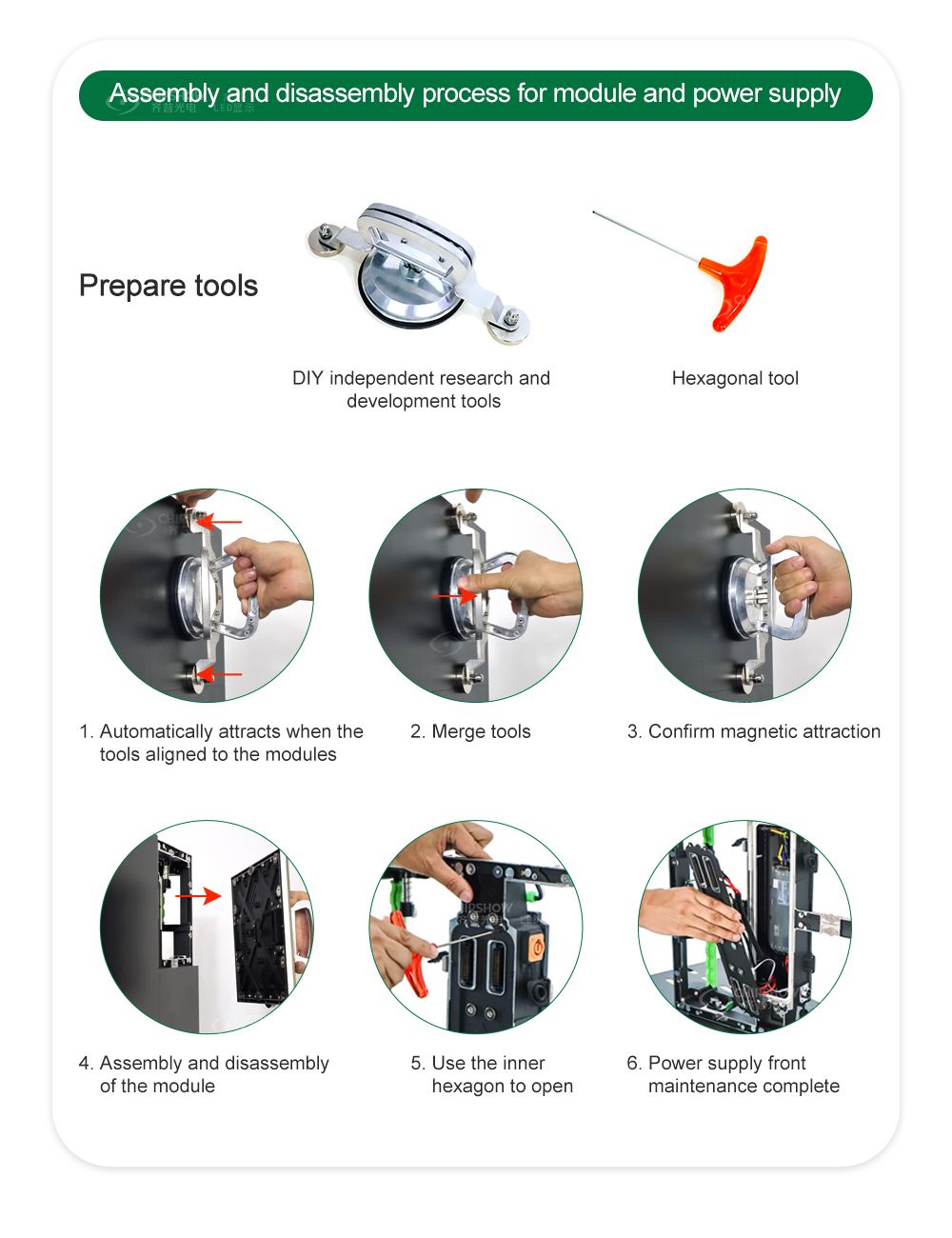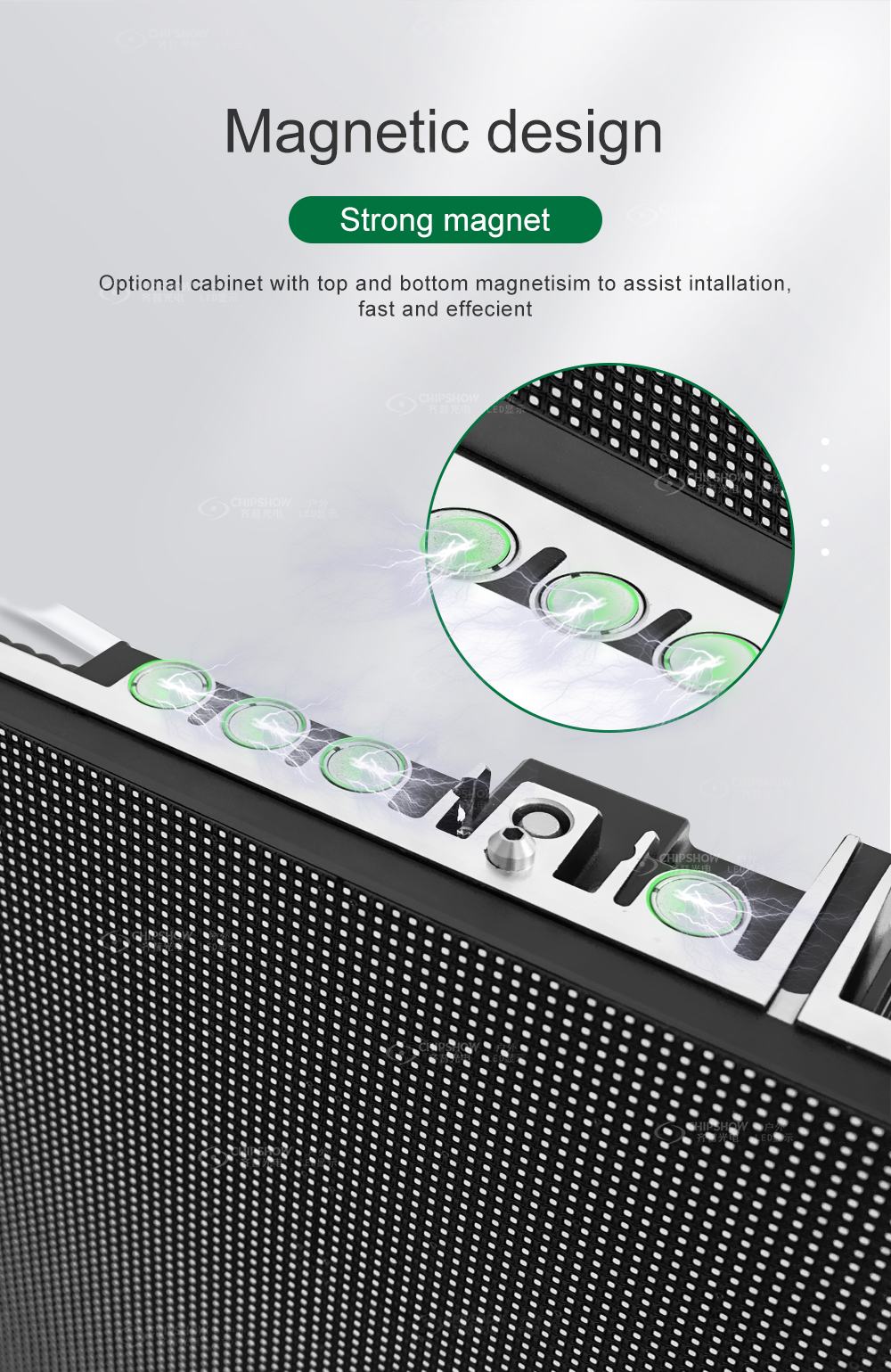 3. Магнитная конструкция: магнитный модуль можно обслуживать спереди и сзади; Магнит между шкафами точно расположен и установлен, что очень выгодно при аренде установки.