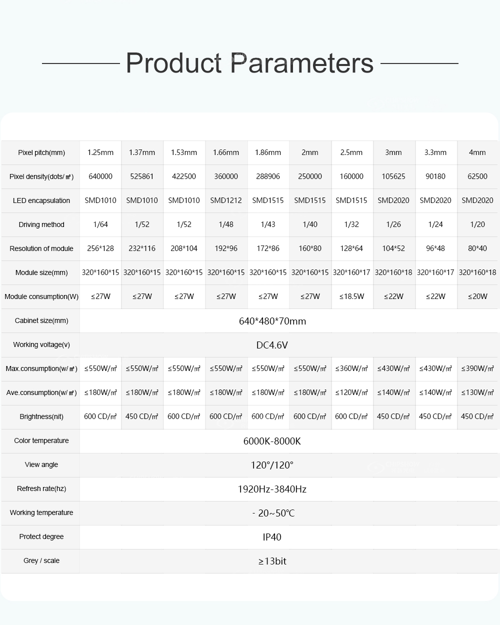 C-Max (p1.25/1.37/1.53/1.66/1.86/2/2.5/3/3.3/4) — наш рекомендуемый вариант, когда речь идет о светодиодных экранах для использования внутри помещений; эта серия проста и долговечна; он имеет ту же долю видеоисточника, что и ЖК-экраны, и, следовательно, может напрямую заменить ЖК-дисплей.