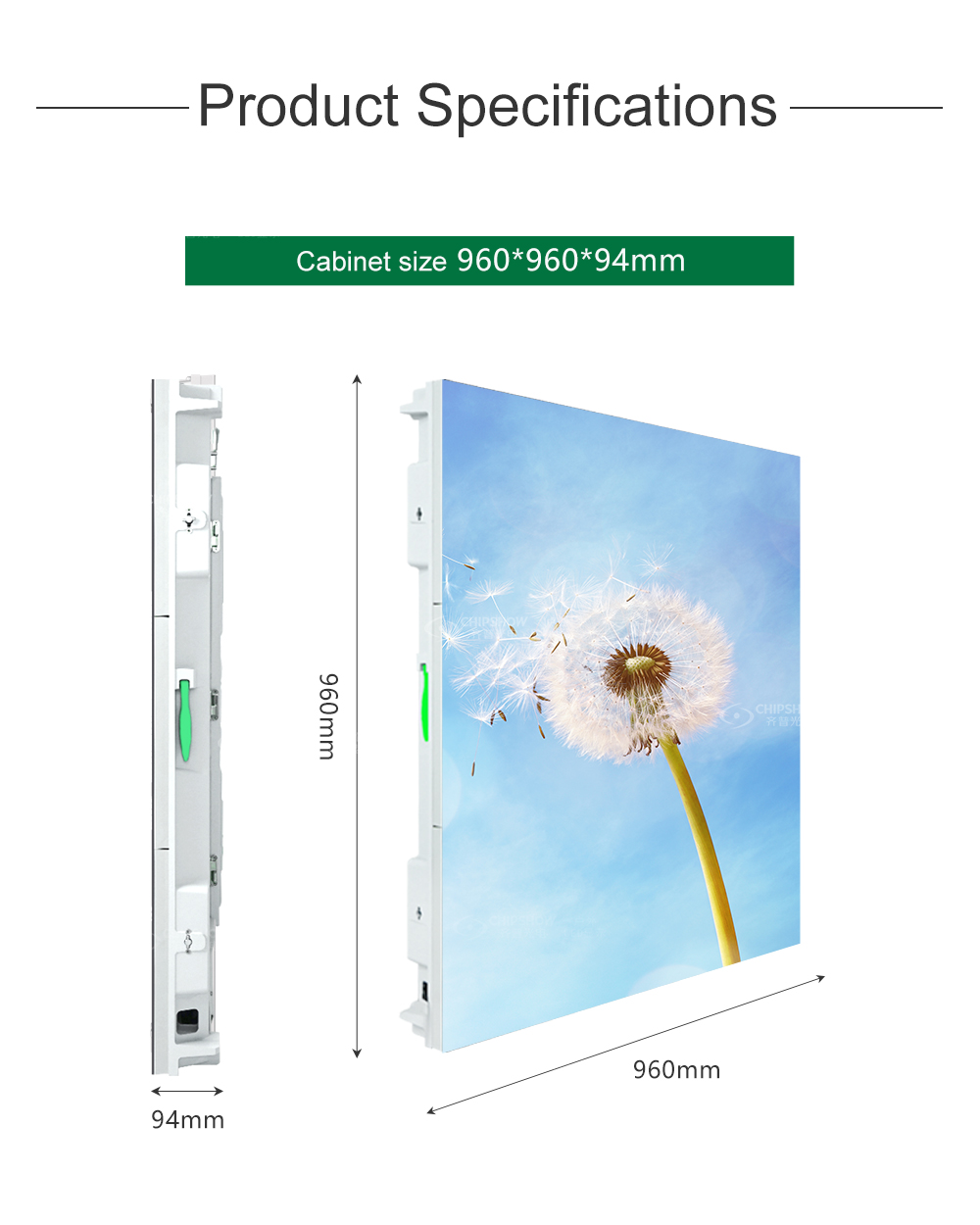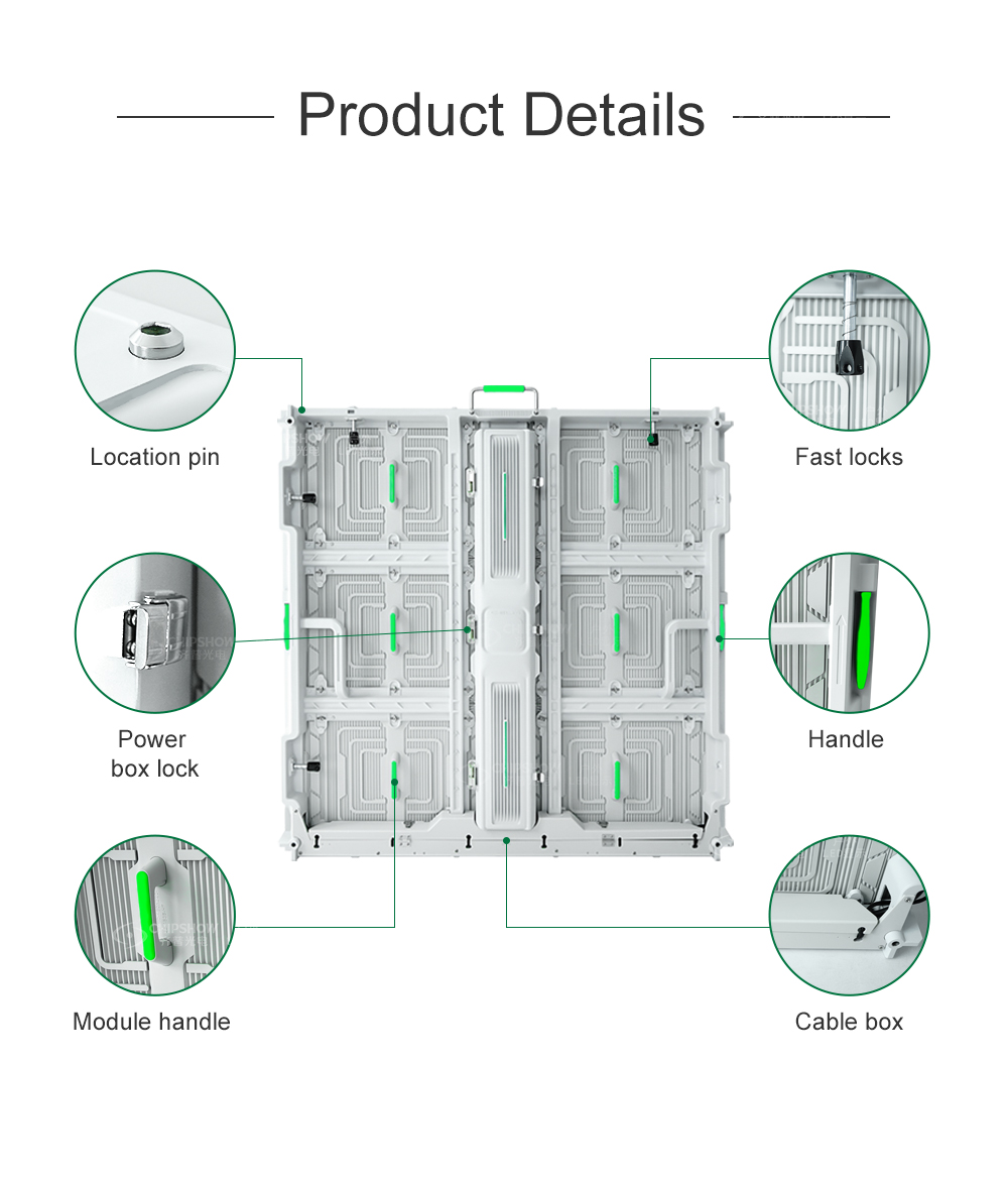 1.Fla: высокопрочный литой алюминиевый корпус ADC12, его можно часто собирать и разбирать без деформации, хорошая плоскостность. 2. Практичность: Чрезвычайно простой и практичный дизайн, прочная ручка, удобный быстрый замок, самый простой и практичный. 3. Магнитное обнаружение: быстрое и точное обнаружение с помощью магнитного штифта на боковых сторонах шкафа, быстрая и простая установка для использования в аренду. 4. Двойное обслуживание: конструкция модуля быстрой блокировки, простота обслуживания спереди или сзади. 5. Экономичность: низкая стоимость, стабильность, надежность и суперэкономичность. 6.Глобальная горячая распродажа площадью более 50 000 квадратных метров. Готовый товар, быстрая доставка.