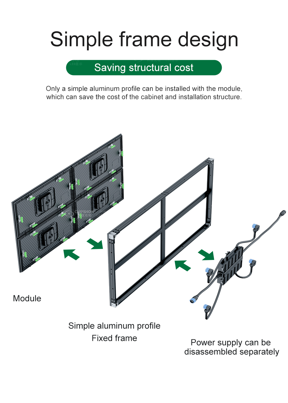 5 Быстрое подключение экрана: модули используют кабели питания и сигнала «2 в 1» для удобства быстрого подключения и установки; кроме того, проводка также относительно аккуратна;
