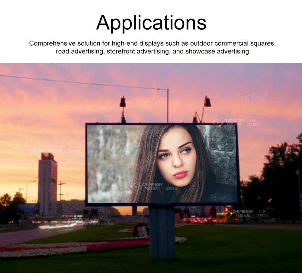8. Комплексное решение для показа: экраны особенно подходят для наружной рекламы в различных местах (например, в торговых центрах, на обочинах дорог, в дверных проемах и в витринах магазинов);
