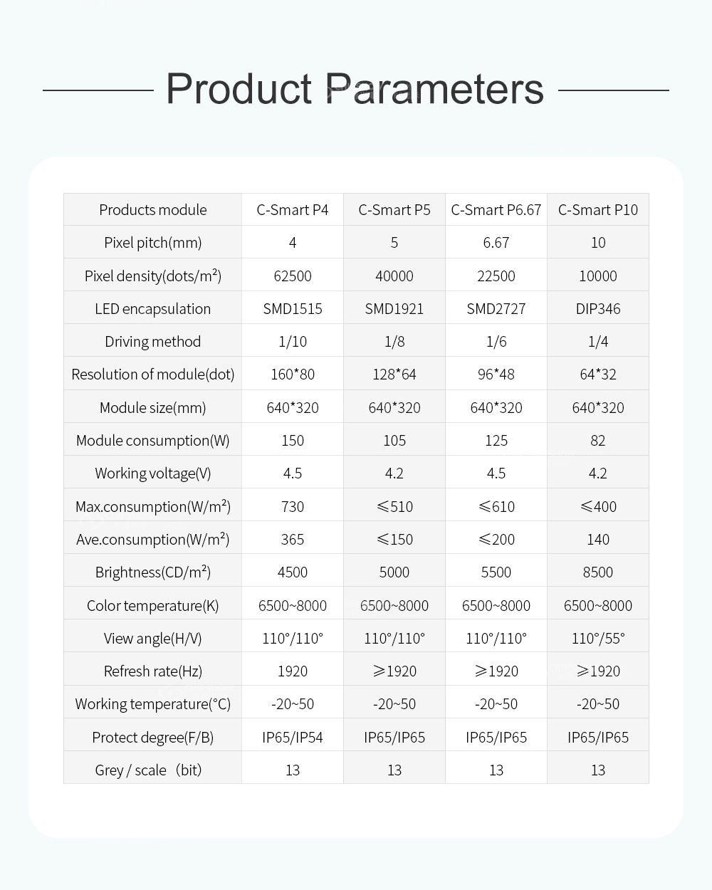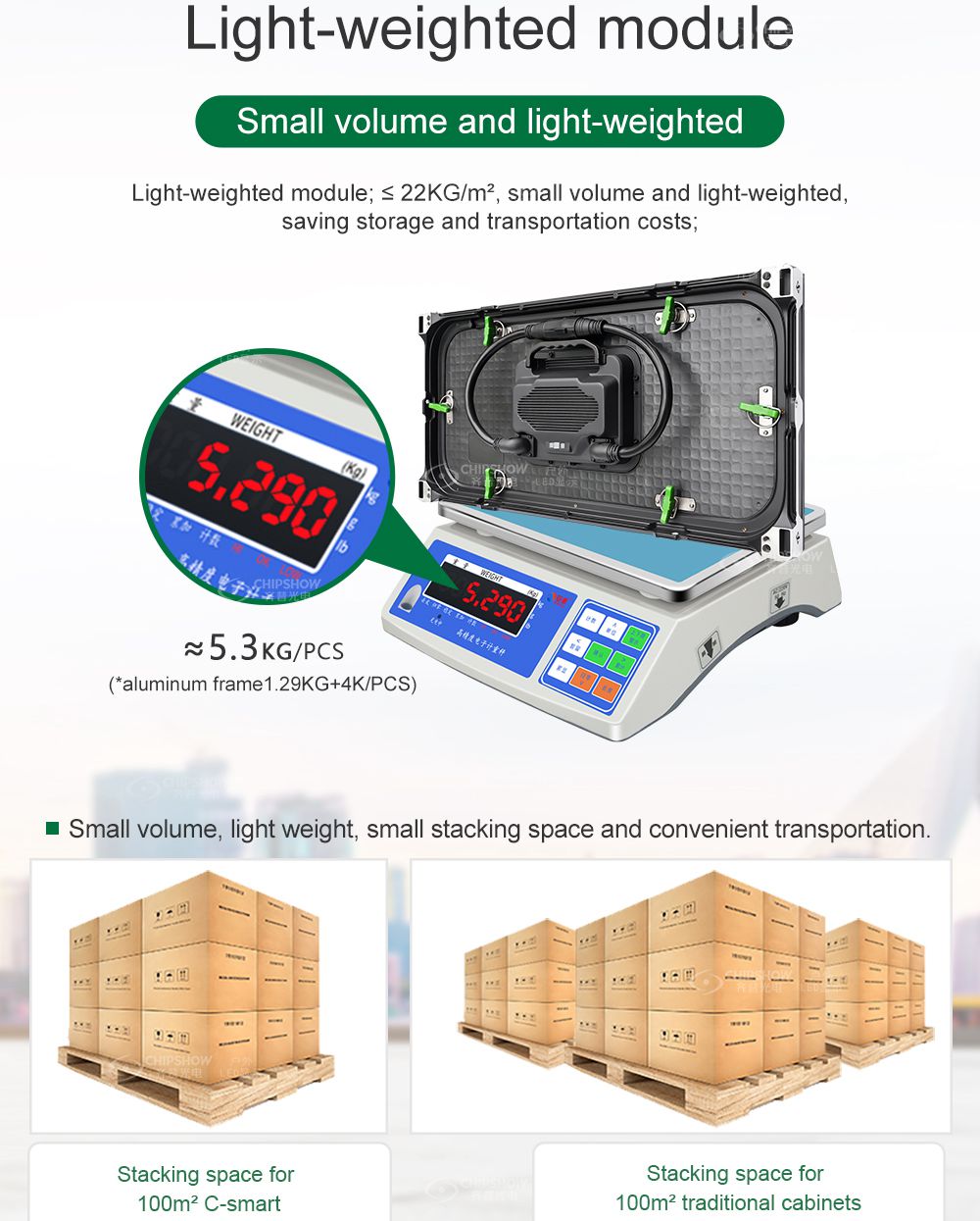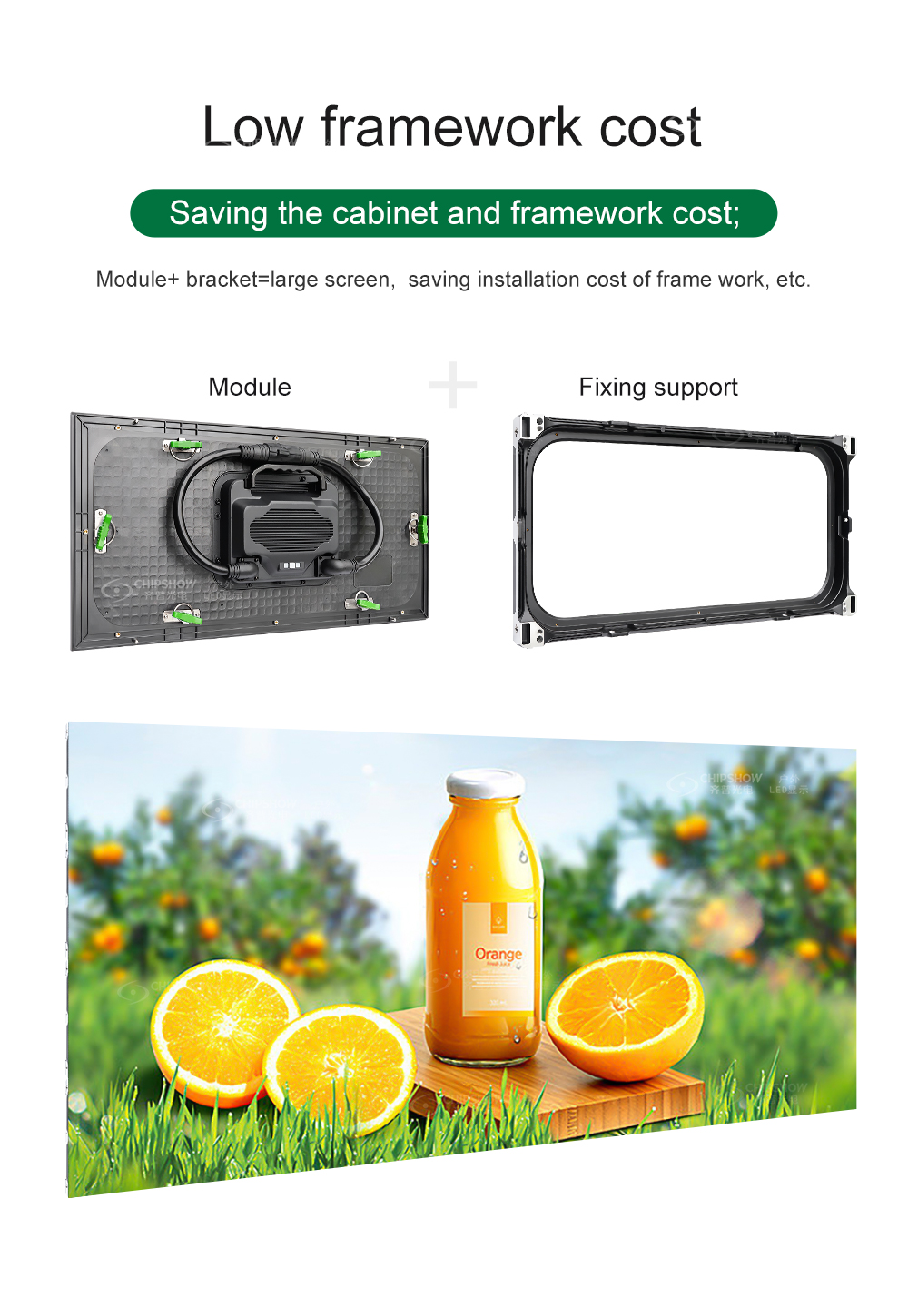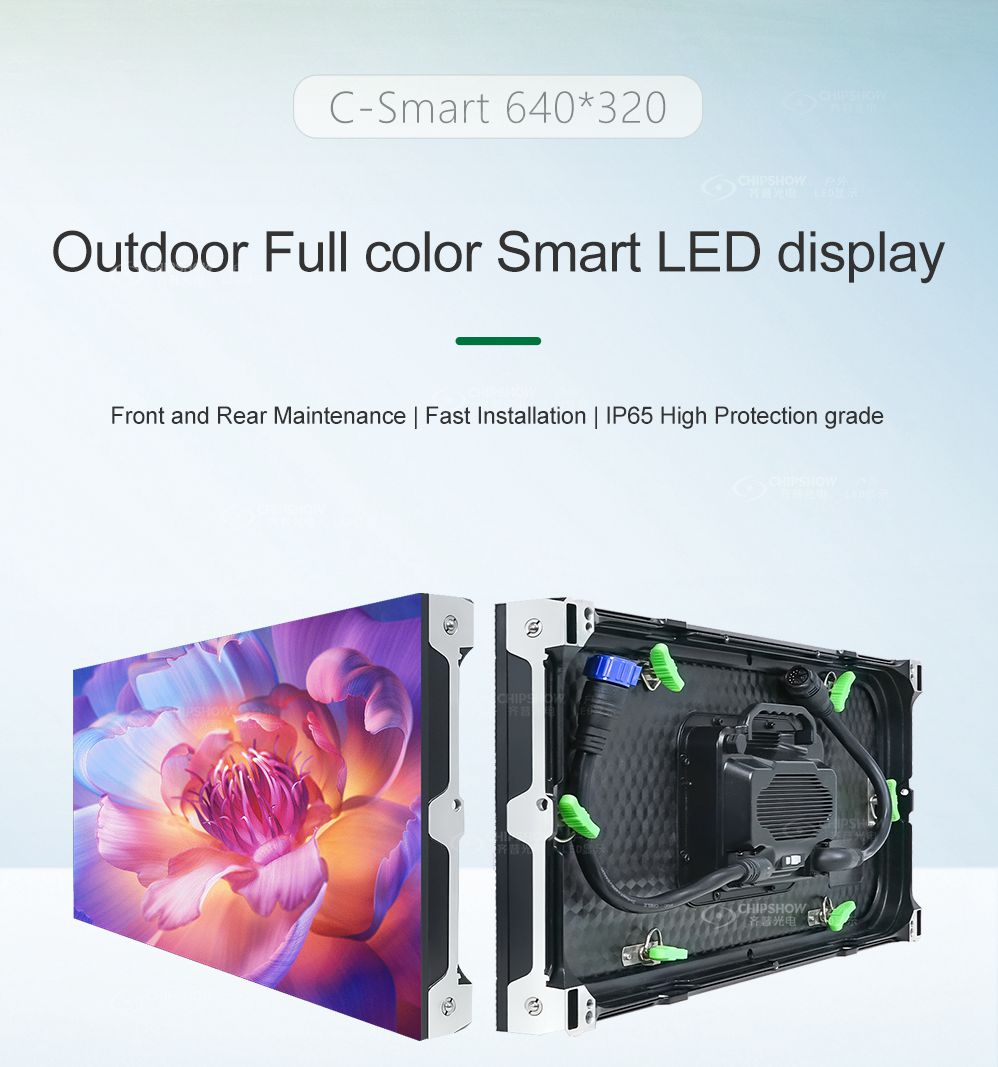 C-Smart — это простой интегрированный передний и задний обслуживаемый светодиодный экран. Нет конструкции шкафа, нужна только простая рама для удержания модулей, что может значительно снизить стоимость установки.