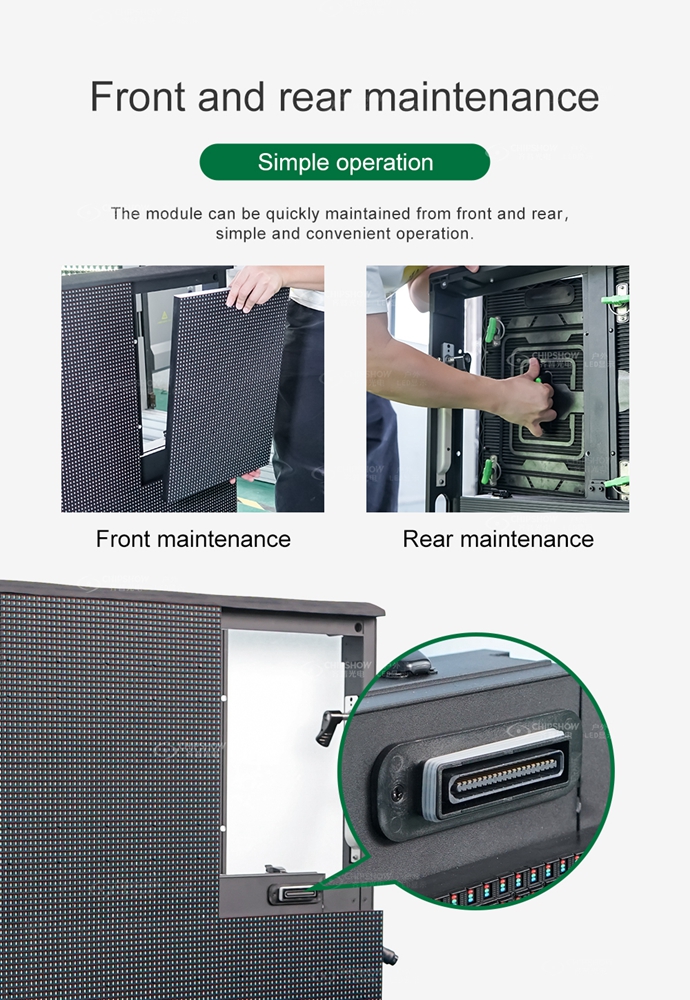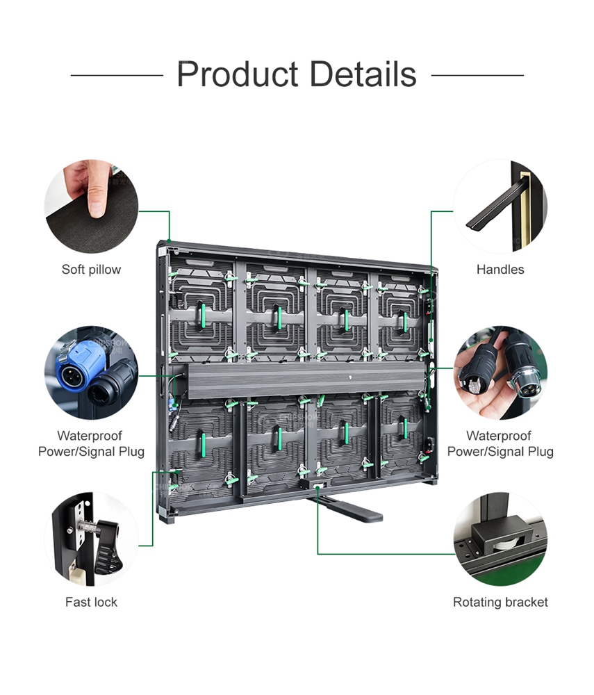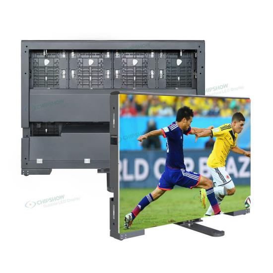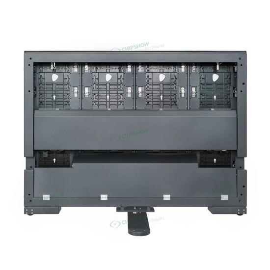 Шкаф оснащен поворотным кронштейном на 90° и быстрыми замками слева и справа для эффективной сборки светодиодного дисплея стадиона.