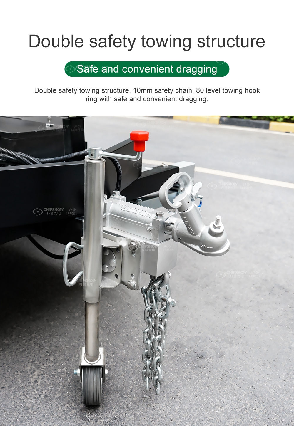 Двойная защитная конструкция для буксировки, толщина 10 мм. цепь, 80-уровневое кольцо буксирного крюка с безопасным и удобным перетаскиванием.