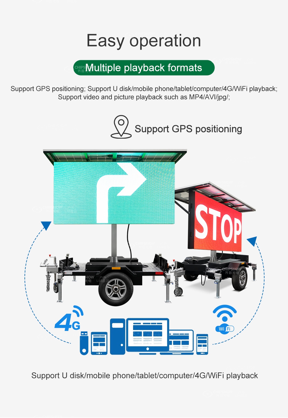Гидравлический подъем+ вращающаяся конструкция; весь экран зависает на высоте 1 м и на 360° для воспроизведения информации на любой высоте и угол.