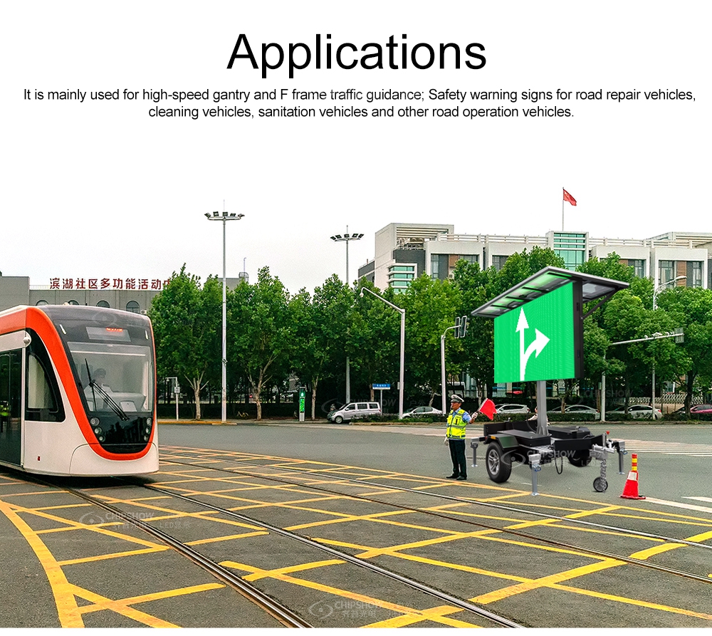 Он в основном используется для высокоскоростных портальных и F-кадр управления трафиком; Предупреждающие знаки безопасности для дорожно-ремонтных машин, машины для уборки, санитарно-гигиенические машины и другие транспортные средства для эксплуатации дорог.