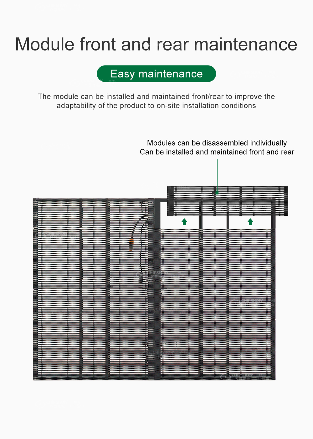 5 Обслуживание спереди и сзади: вы можете устанавливать и обслуживать экран спереди и сзади, поэтому к нему предъявляются очень слабые требования к условиям установки на месте;