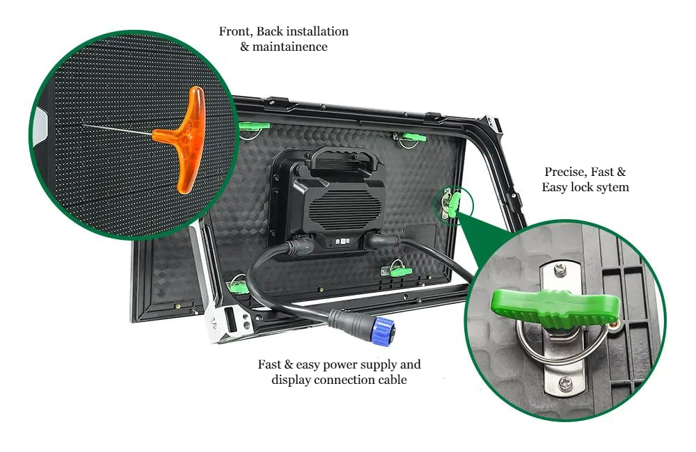 C-Smart — запатентованный продукт, разработанный компанией CHIPSHOW. Он имеет гибкие способы установки и может быть установлен на стене, на подставке, поднят или подвешен. Его интегрированная конструкция сочетает в себе удобство, практичность и прогресс, устраняя традиционную коробчатую структуру традиционных светодиодных дисплеев и подходит для различных суровых условий установки на открытом воздухе. Подводя итог, можно сказать, что он имеет следующие преимущества: