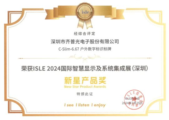 Световой экран C-Slim ICE получил награду Rising Star Product Award.