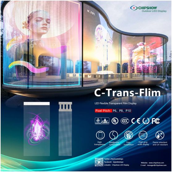 Chipshow также имеет собственную серию светодиодных прозрачных/голографических экранов. Светодиодный голографический экран очень подходит для коммерческого использования.