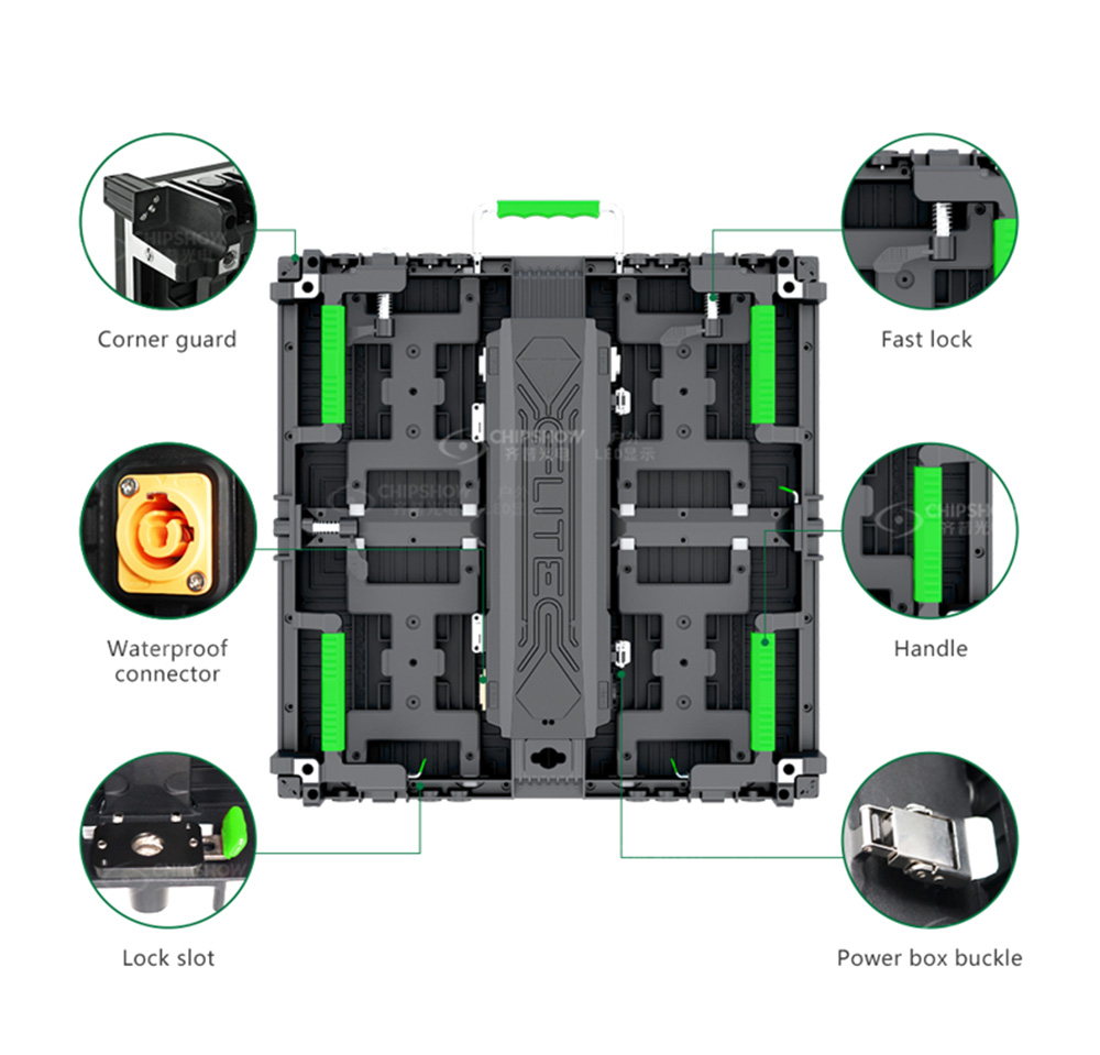 Высокая плоскостность : C-Lite-Plus P1.56 использует высокопрочный литой алюминиевый корпус ADC12, который не деформируется даже в случае частой разборки и сборки, обеспечивая плоскостность экрана.