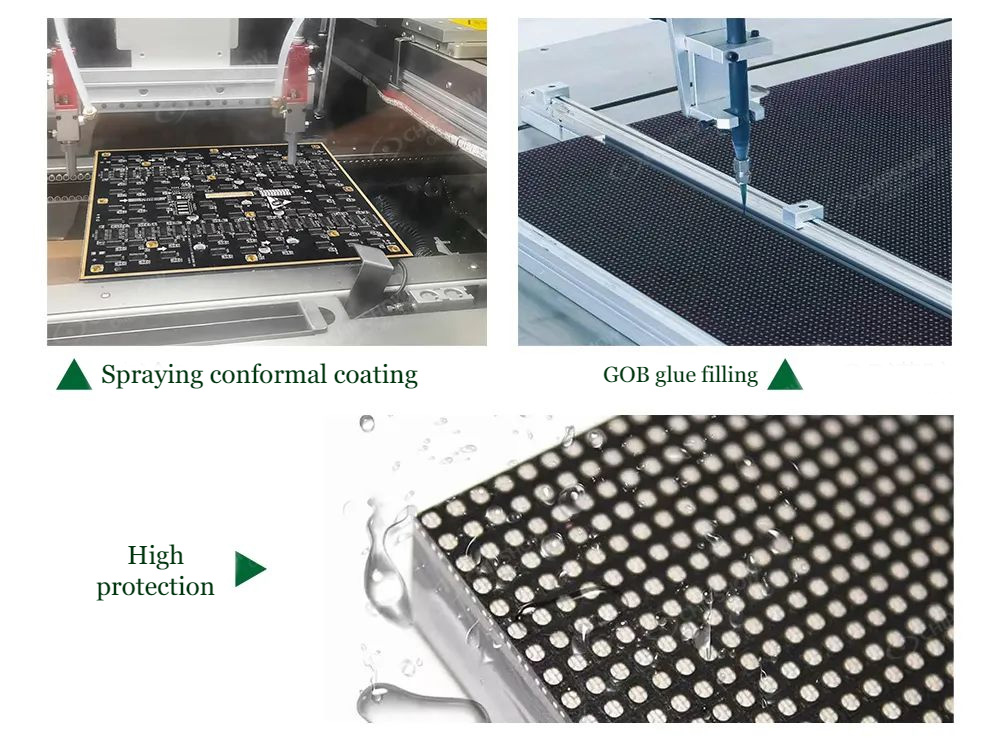 1. C-Lite-Plus P1.56, как уличный экран, должен обладать сильными защитными возможностями. Chipshow распылил на свои модули защитную краску и добавил водонепроницаемые резиновые кольца. Передняя часть модулей имеет GOB и обработку клеем для многократной защиты. Мастерство изготовления значительно повышает водостойкость и воздухонепроницаемость C-Lite-Plus, и его можно стабильно использовать на открытом воздухе.