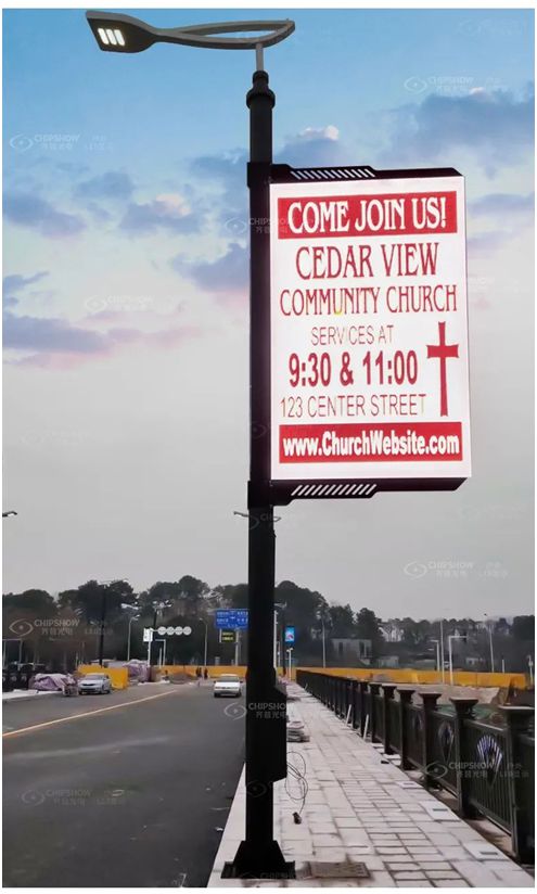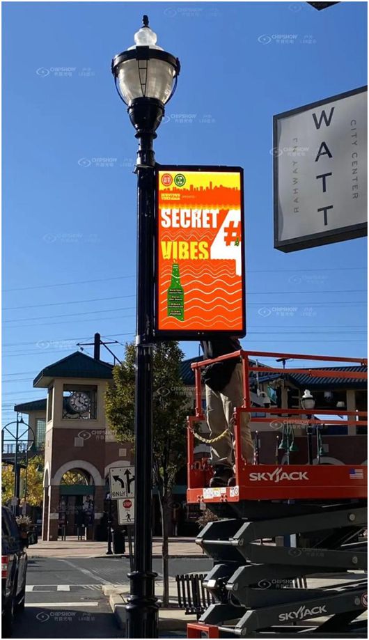 Светодиодный экран на фонарном столбе, выпущенный Chipshow, имеет небольшое расстояние, высокое разрешение и четкое и деликатное качество изображения; его можно напрямую заблокировать и установить на столбе уличного фонаря с помощью обруча, просто и быстро; интеллектуальное управление, управление кластером и групповое вещание группы управления сетью 5G; он может заменить всю печатную рекламу на фонарном столбе и может быть повторно использован после установки на всю жизнь; он имеет сильное визуальное воздействие и может включаться для воспроизведения рекламы 24 часа в сутки; он имеет большую информационную емкость, самодельные программы можно запускать немедленно, а контент богат и ориентирован на регулярные промежутки времени. Низкая стоимость, экологичность и низкий уровень выбросов углерода.