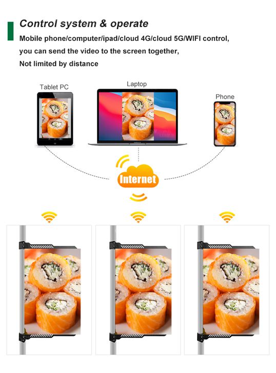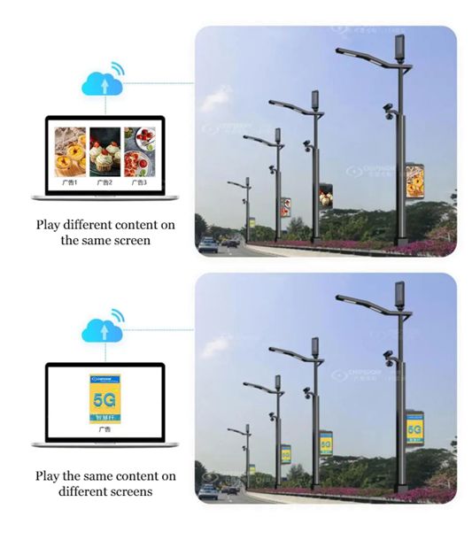 Интеллектуальный наружный светодиодный экран на фонарном столбе оснащен системой дистанционного управления и мониторинга, поэтому операторы могут управлять содержимым дисплея, яркостью и интерактивными функциями в режиме реального времени. Кроме того, светодиодные экраны для наружных фонарных столбов также можно настроить в соответствии с потребностями клиентов, такими как размер, яркость, цвет и т. д., чтобы удовлетворить требования к отображению различных сцен и потребностей.